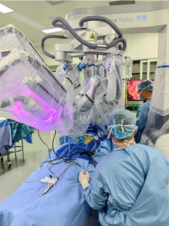 由于對國產單孔手術機器人的熟練掌握,趙任教授團隊憑借豐富的手術經驗以及默契的配合克服了新技術、新設備帶來的困難和挑戰(zhàn),探索單孔腔鏡機器人手術新模式和方案,實現了遠端胃癌根治術從多孔機器人手術到單孔機器人手術的突破。該手術的順利完成是國產單孔手術機器人在普外科里程碑式的進展,標志著國產手術機器人正憑借其技術優(yōu)勢不斷開拓應用領域,讓切口更小、創(chuàng)傷更小、恢復更快的手術技術得以普及。