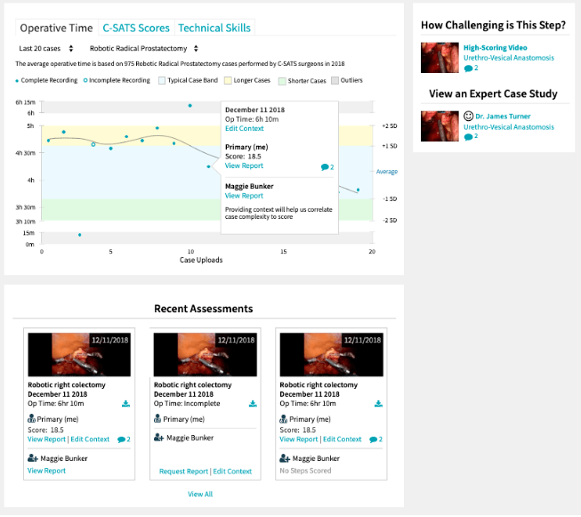 醫(yī)生可將他們的手術(shù)案例安全地存儲(chǔ)在私人C-SATS視頻庫(kù)中,并獲得人工智能和數(shù)據(jù)分析得到的臨床見(jiàn)解,還可以獲得專(zhuān)家的評(píng)估和反饋,不斷完善他們的技能。