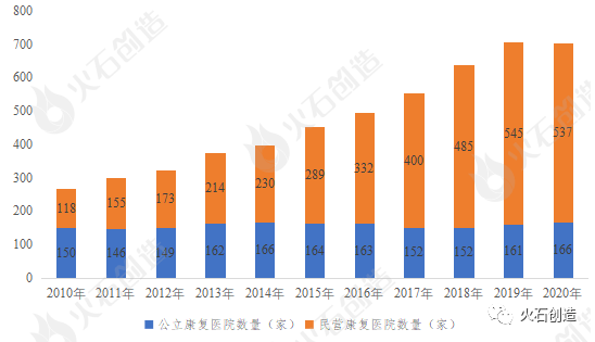 圖4:2010-2020年全國公立和民營康復(fù)醫(yī)院數(shù)量