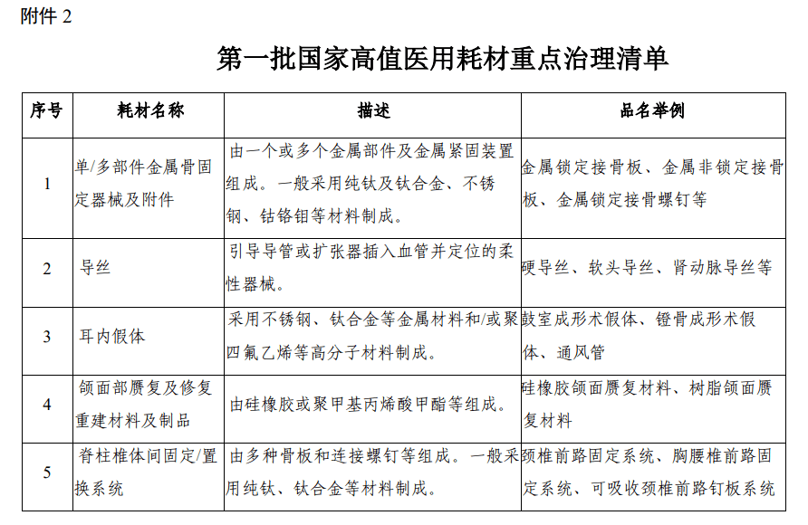 在本次《國家二級公立醫(yī)院績效考核操作手冊(2022版)》中,再次 明確了第一批國家高值醫(yī)用耗材重點治理清單。