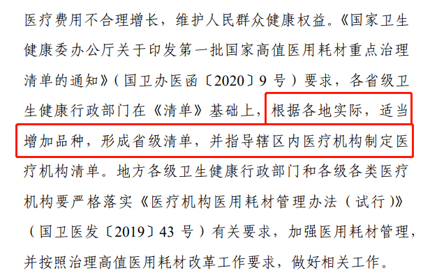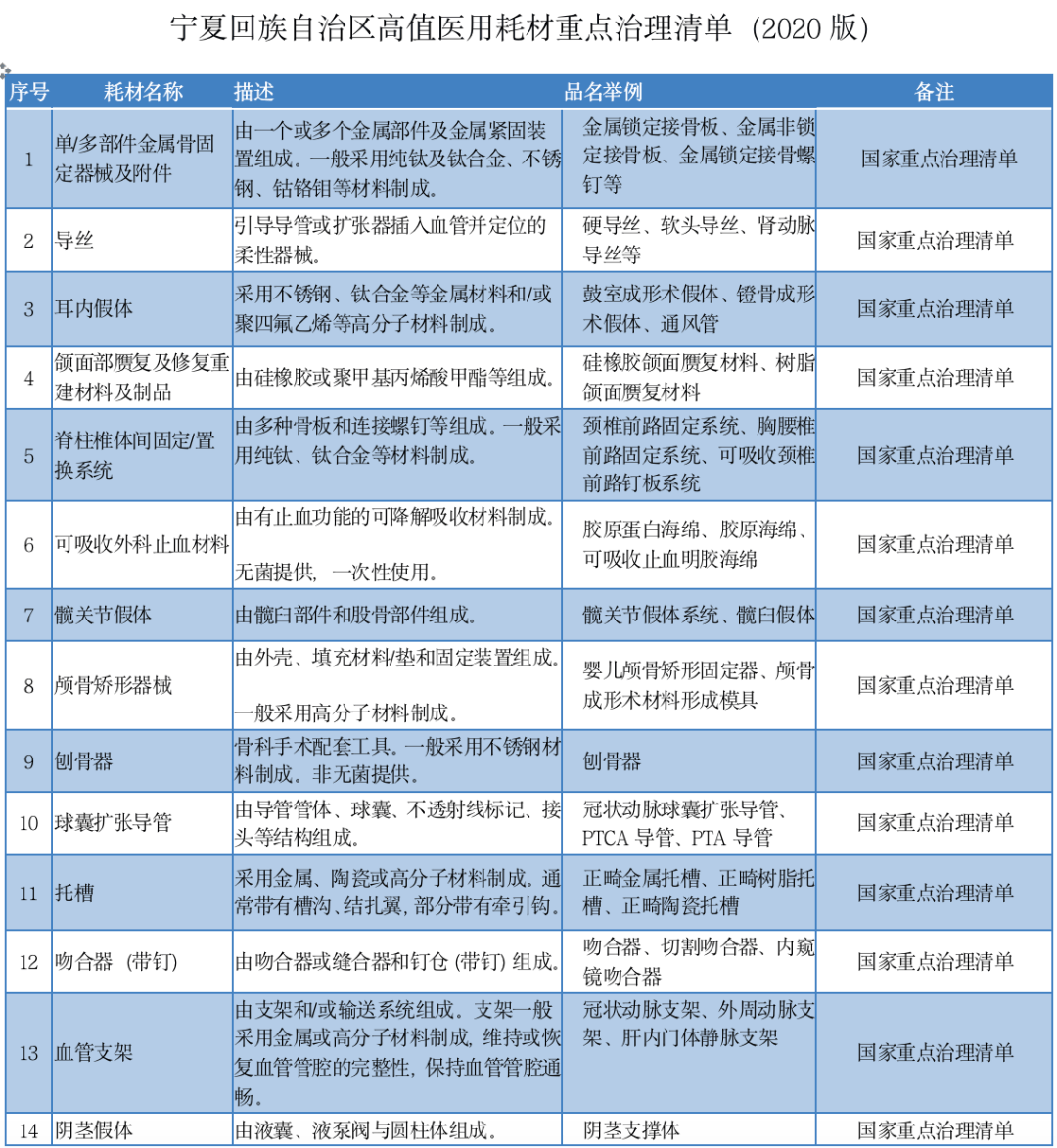 此前,寧夏回族自治區(qū)、河南省已經(jīng)根據(jù)實際情況,在國家清單的基礎(chǔ)上做出改變,增加了部分高值耗材品種。