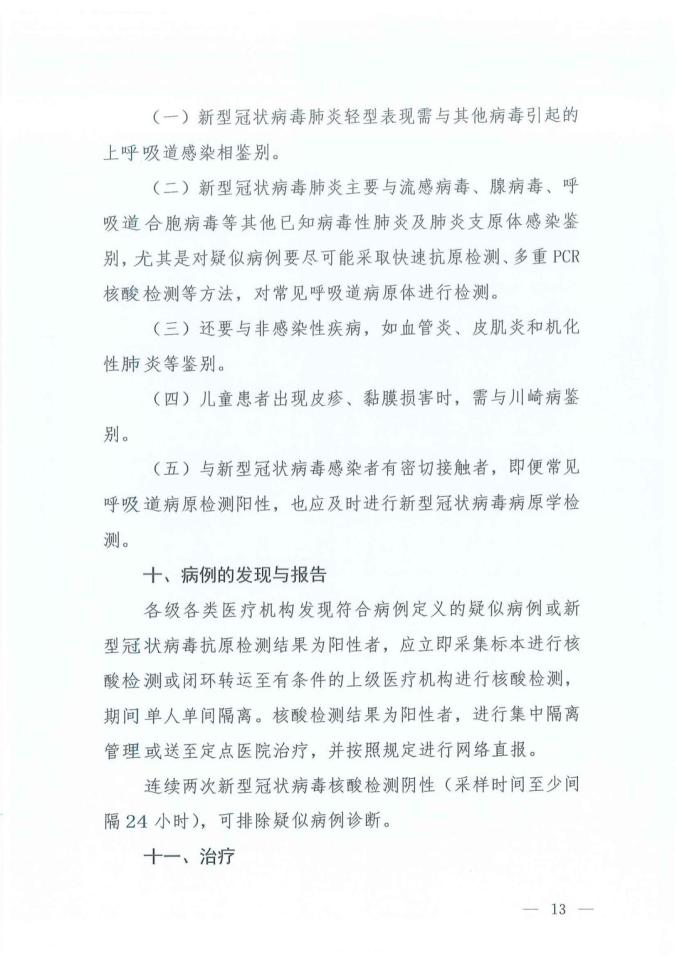 6、疑似病例排除標準修改為:連續(xù)兩次新型冠狀病毒核酸檢測陰性(采樣時間至少間隔24小時),可排除疑似病例診斷。(不再要求抗體)