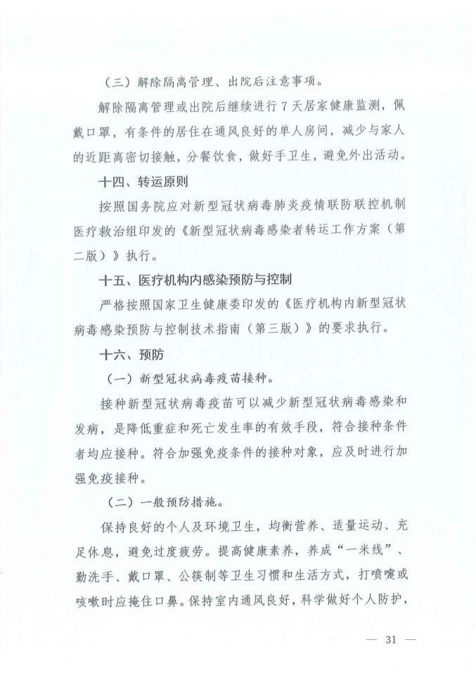 11、預(yù)防部分提及:接種新型冠狀病毒疫苗可以減少新型冠狀病毒感染和發(fā)病,是降低重癥和死亡發(fā)生率的有效手段,符合接種條件者均應(yīng)接種。符合加強免疫條件的接種對象,應(yīng)及時進行加強免疫接種。