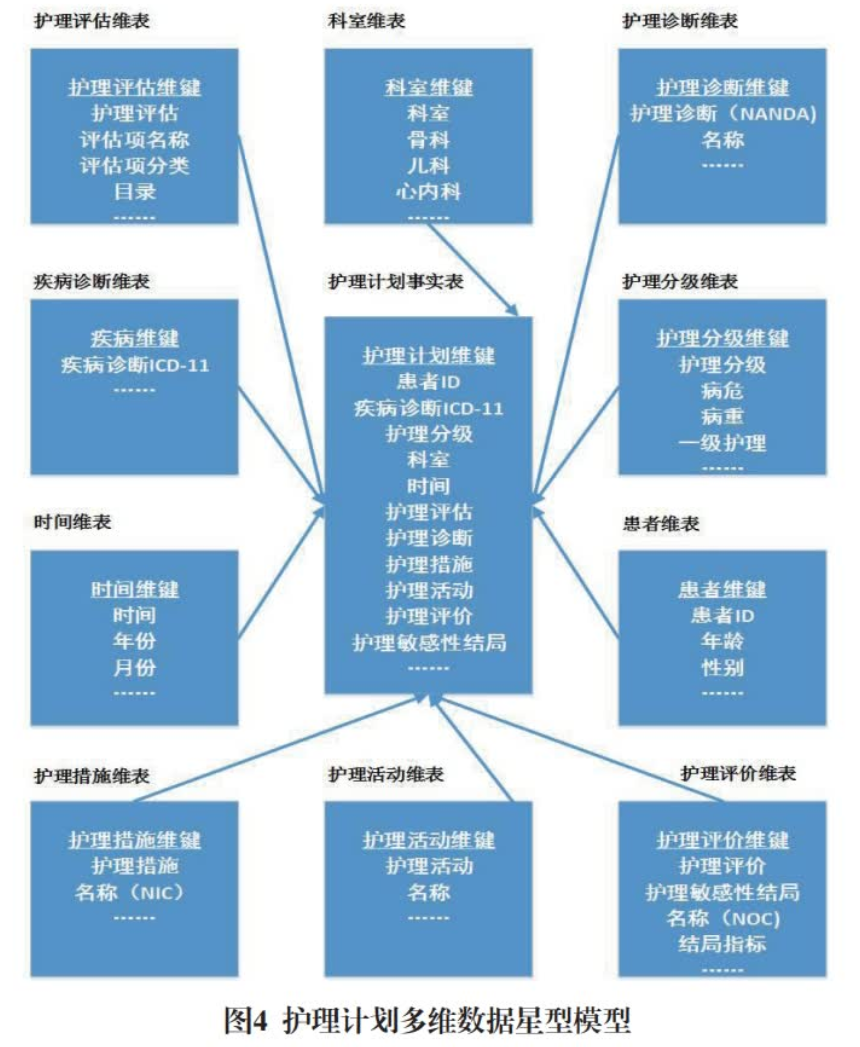 “數(shù)據(jù)信息交互、整合、共享,智能決策支持”構(gòu)成8級(jí)電子病歷系統(tǒng)核心評(píng)價(jià)標(biāo)準(zhǔn)。我國(guó)電子病歷應(yīng)用處于較低等級(jí),大多CDSS沒有提供常規(guī)警報(bào)提醒、摘要儀表盤和自動(dòng)信息檢索以外的功能。鑒于此,本研究基于數(shù)據(jù)驅(qū)動(dòng)的決策支持理念,探討將數(shù)據(jù)倉(cāng)庫(kù)、聯(lián)機(jī)分析處理及數(shù)據(jù)挖掘技術(shù)引入智能化護(hù)理決策支持系統(tǒng),對(duì)系統(tǒng)數(shù)據(jù)信息獲取、存儲(chǔ)、集成、分析與呈現(xiàn)進(jìn)行全面規(guī)劃,并在此基礎(chǔ)上構(gòu)建基于數(shù)據(jù)倉(cāng)庫(kù)的智能化護(hù)理決策支持系統(tǒng)大數(shù)據(jù)平臺(tái)。通過專業(yè)照護(hù)護(hù)理評(píng)估、診斷、計(jì)劃、措施、活動(dòng)及評(píng)價(jià)數(shù)據(jù)交互整合、多維分析、挖掘、知識(shí)發(fā)現(xiàn),為數(shù)據(jù)驅(qū)動(dòng)的專業(yè)照護(hù)智能決策支持系統(tǒng)研發(fā)與實(shí)現(xiàn)提供有益參考。