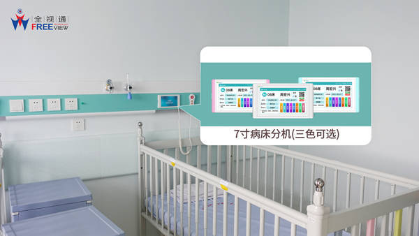 在兒科智慧病房,七色花的配色與病床融為一體,營(yíng)造一種積極、溫暖的氛圍,給小患兒被“愛(ài)”包圍的感覺(jué)。床頭安裝病床分機(jī),可以觸屏操作,方便家長(zhǎng)呼叫護(hù)士站,實(shí)現(xiàn)高效溝通。每臺(tái)病床分機(jī)“小小的身軀”,卻有“大大的作用”,支持雙向呼叫、信息顯示、用藥提醒、呼叫定位、輸液報(bào)警等功能。