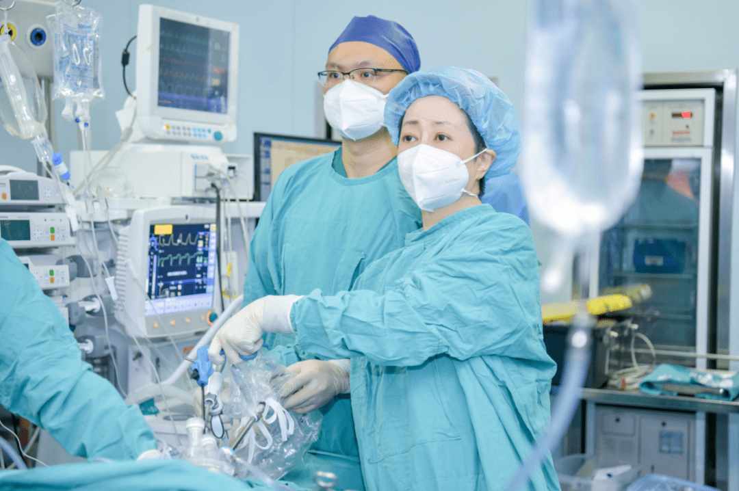 王育院長(zhǎng)及其團(tuán)隊(duì)進(jìn)行單孔腹腔鏡手術(shù)