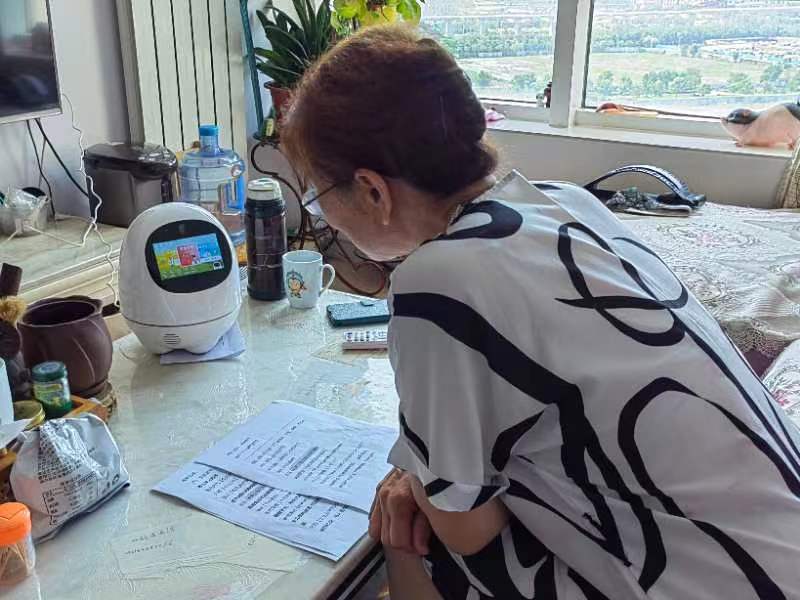 獨居老人在與智能陪伴終端互動(央廣網(wǎng)發(fā) 朱欣平攝)