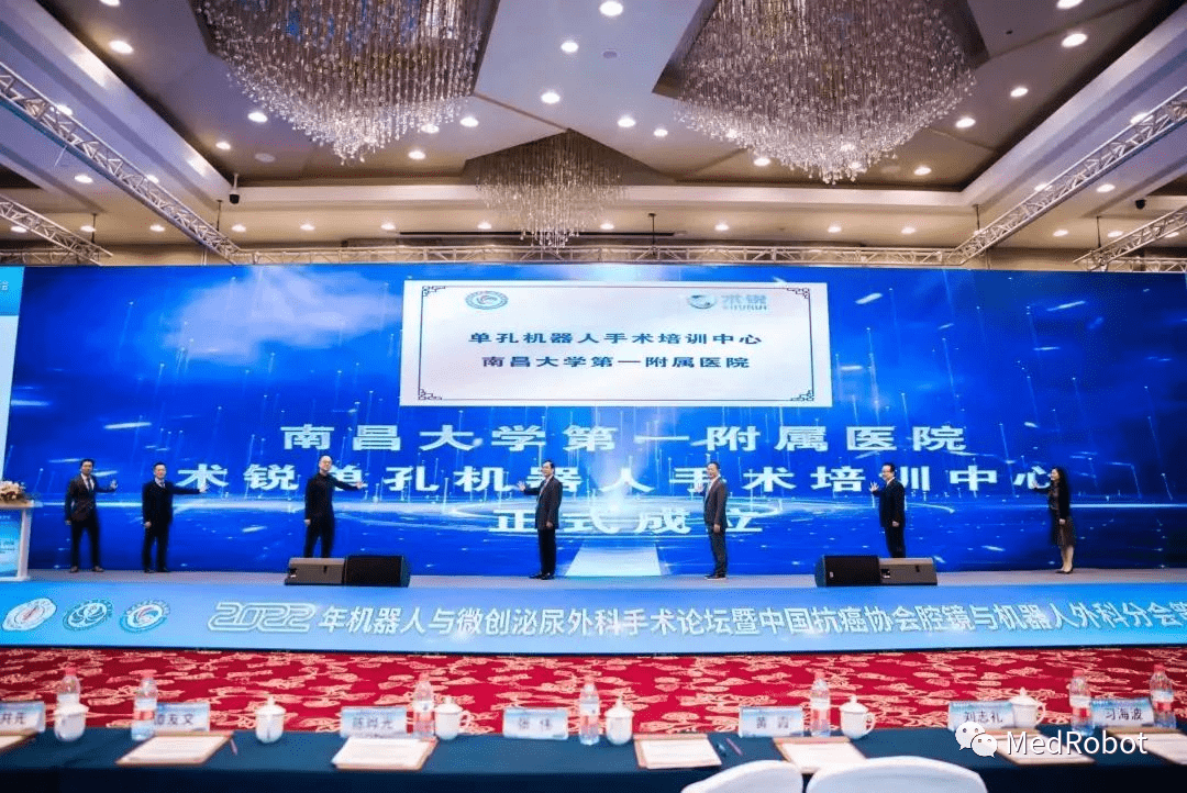 2022年11月5日,南昌大學(xué)第一附屬醫(yī)院·術(shù)銳單孔機(jī)器人手術(shù)培訓(xùn)中心揭牌儀式在由江西省整合醫(yī)學(xué)學(xué)會、南昌大學(xué)第一附屬醫(yī)院聯(lián)合承辦的“2022年機(jī)器人與微創(chuàng)泌尿外科手術(shù)論壇”上盛大舉行。