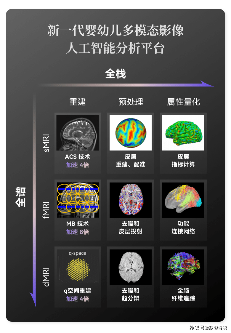 聯(lián)影智能參與了由上??萍即髮W(xué)牽頭的 0-6 歲人腦發(fā)育研究項(xiàng)目,通過(guò)研發(fā)人工智能創(chuàng)新技術(shù),從快速成像、圖像去噪、高精度嬰幼兒腦影像分析到智能多模態(tài)融合,最終構(gòu)建腦影像智能分析平臺(tái),實(shí)現(xiàn)高精度和自動(dòng)化的嬰幼兒多模態(tài)腦影像分析,支持嬰幼兒腦發(fā)育圖譜建立和早期社會(huì)情緒與交流能力發(fā)展評(píng)估。該項(xiàng)目近期獲批科技部 2030-“腦科學(xué)與類腦研究”重大項(xiàng)目,是中國(guó)腦計(jì)劃的重要組成部分之一,可為早期識(shí)別診斷甚至治療自閉癥、多動(dòng)癥、發(fā)育障礙等嬰幼兒相關(guān)疾病提供關(guān)鍵依據(jù),對(duì)嬰幼兒健康發(fā)展乃至國(guó)計(jì)民生有重大意義。
