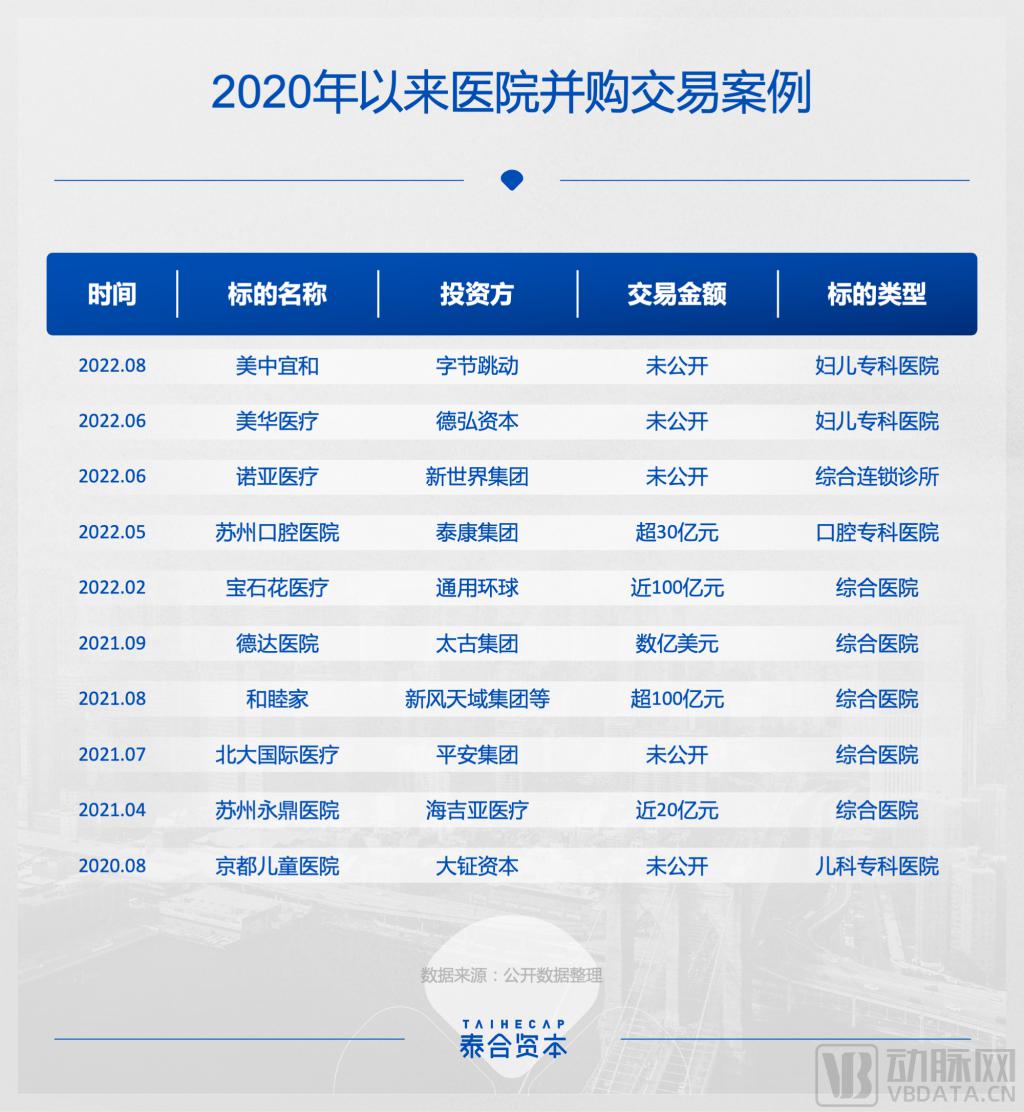 具備專業(yè)能力的綜合型管理集團(tuán)(PE、險(xiǎn)資等)借此機(jī)會(huì)"抄底"入局,如新風(fēng)天域完成和睦家醫(yī)療集團(tuán)私有化,泰康保險(xiǎn)集團(tuán)戰(zhàn)略投資三博腦科醫(yī)院等;