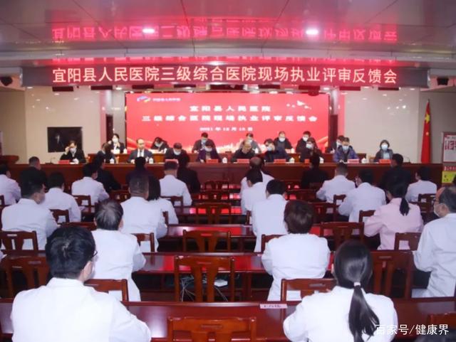 2021年12月15日,宜陽(yáng)縣人民醫(yī)院三級(jí)綜合醫(yī)院現(xiàn)場(chǎng)執(zhí)業(yè)評(píng)審反饋會(huì)現(xiàn)場(chǎng)(圖片來(lái)源:醫(yī)院官方微信)