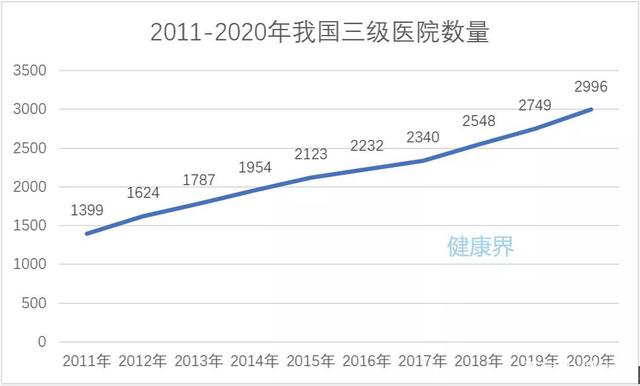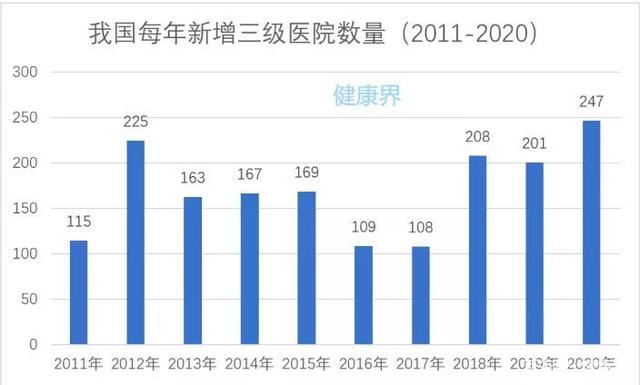 2020年,我國(guó)新增三級(jí)醫(yī)院247家,創(chuàng)10年來(lái)的峰值,總數(shù)達(dá)到2996家。