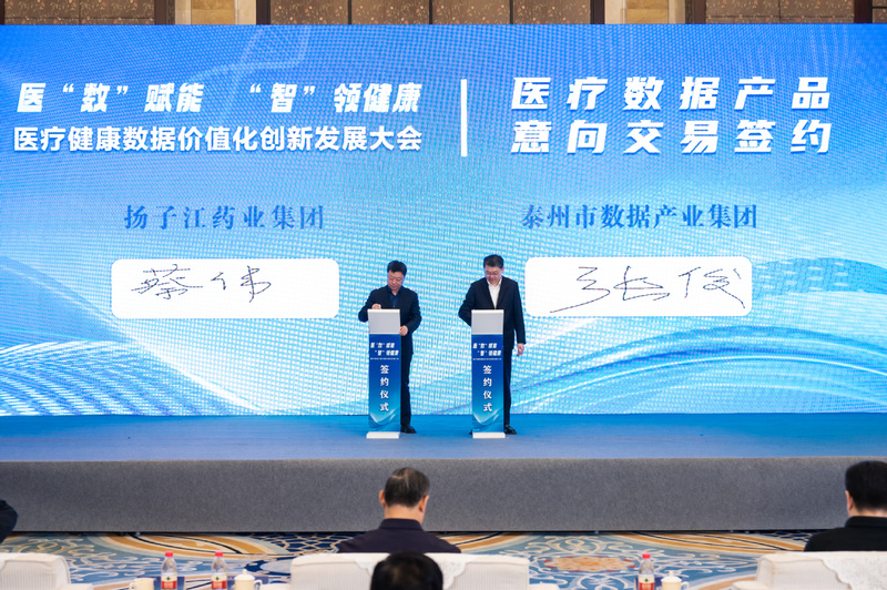 會上,泰州市數(shù)據(jù)產(chǎn)業(yè)集團(tuán)與揚子江藥業(yè)集團(tuán)就“三高六病”數(shù)據(jù)產(chǎn)品達(dá)成意向簽約。