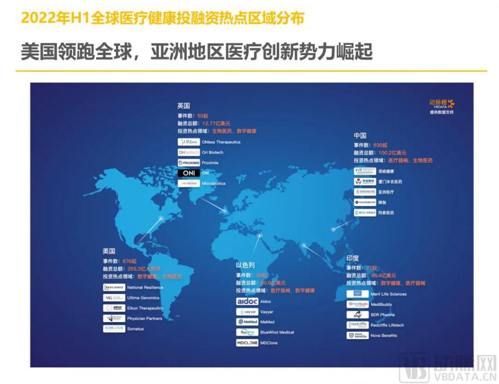 從投資熱點(diǎn)領(lǐng)域看,生物醫(yī)藥和數(shù)字健康是 2022 年上半年全球共同關(guān)注的熱點(diǎn)領(lǐng)域。