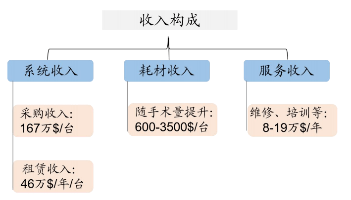 手術(shù)機器人的銷售包括機器人系統(tǒng)、手術(shù)耗材和服務(wù)費用。