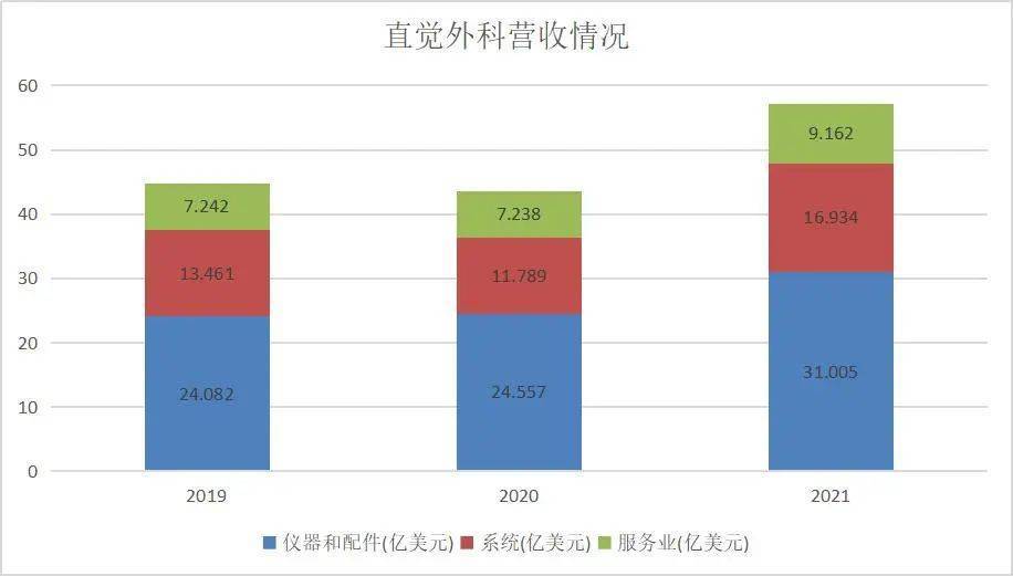 根據(jù)直覺外科年報(bào)披露,受到2020年全球新冠疫情的影響,達(dá)芬奇機(jī)器人參與的手術(shù)數(shù)量出現(xiàn)回落,隨著疫情的好轉(zhuǎn)2021年手術(shù)數(shù)量出現(xiàn)回升,公司的營(yíng)收情況也出現(xiàn)好轉(zhuǎn),2021年?duì)I收達(dá)到57億美金,相比2020年的44億美金增加31%。