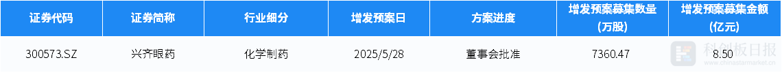 A股上市公司中,眼科藥物研發(fā)商興齊眼藥(300573.SZ)公布了定增預(yù)案,擬通過向特定對象發(fā)行股票的方式募集資金不超過8.5億元,其中6.5億元用于研發(fā)中心建設(shè)項(xiàng)目,2億元用于補(bǔ)充流動資金。