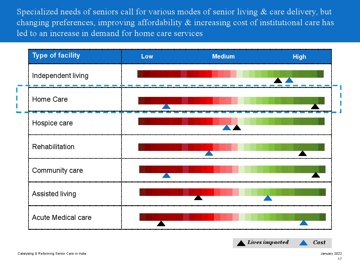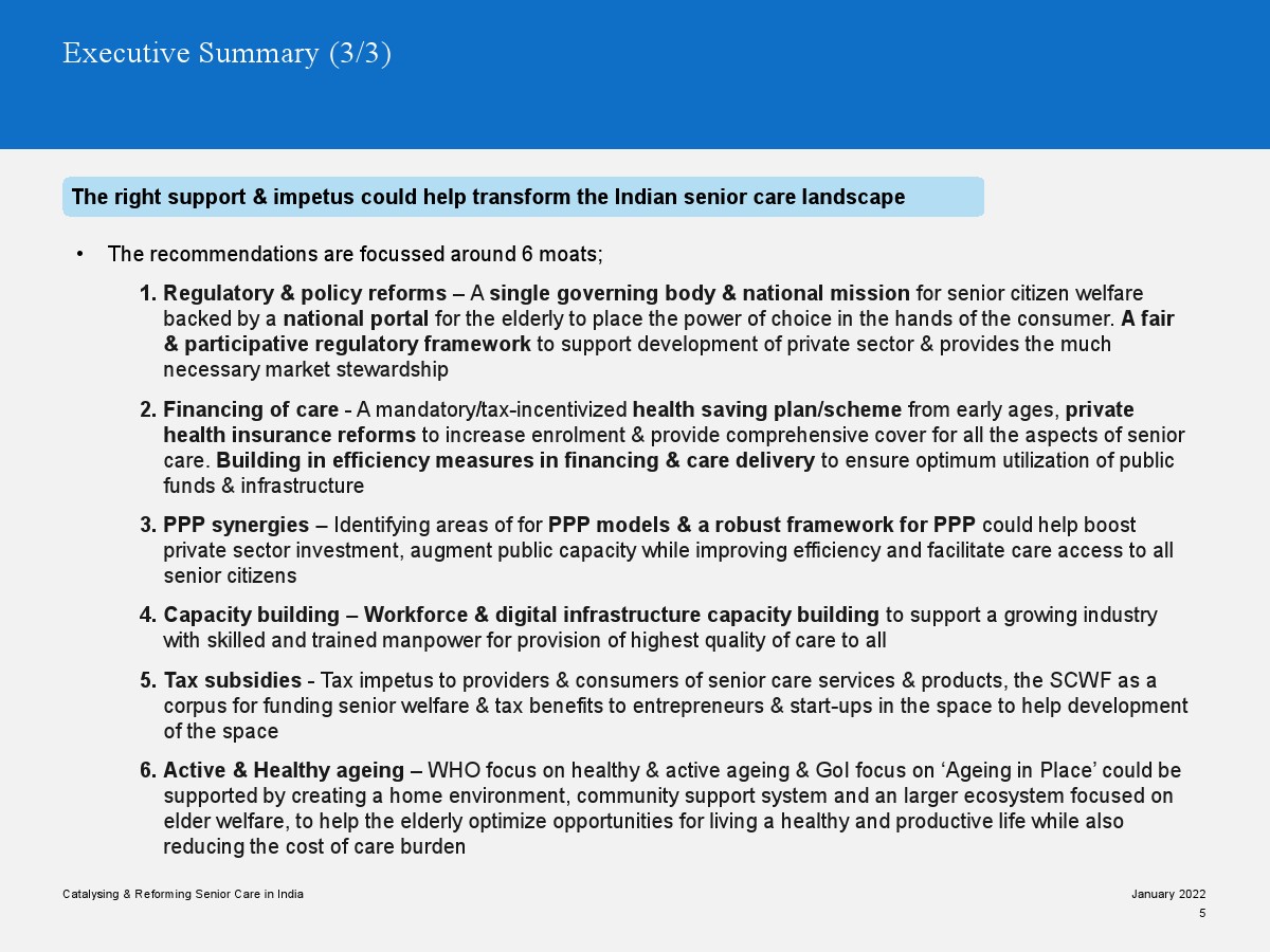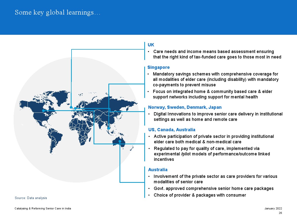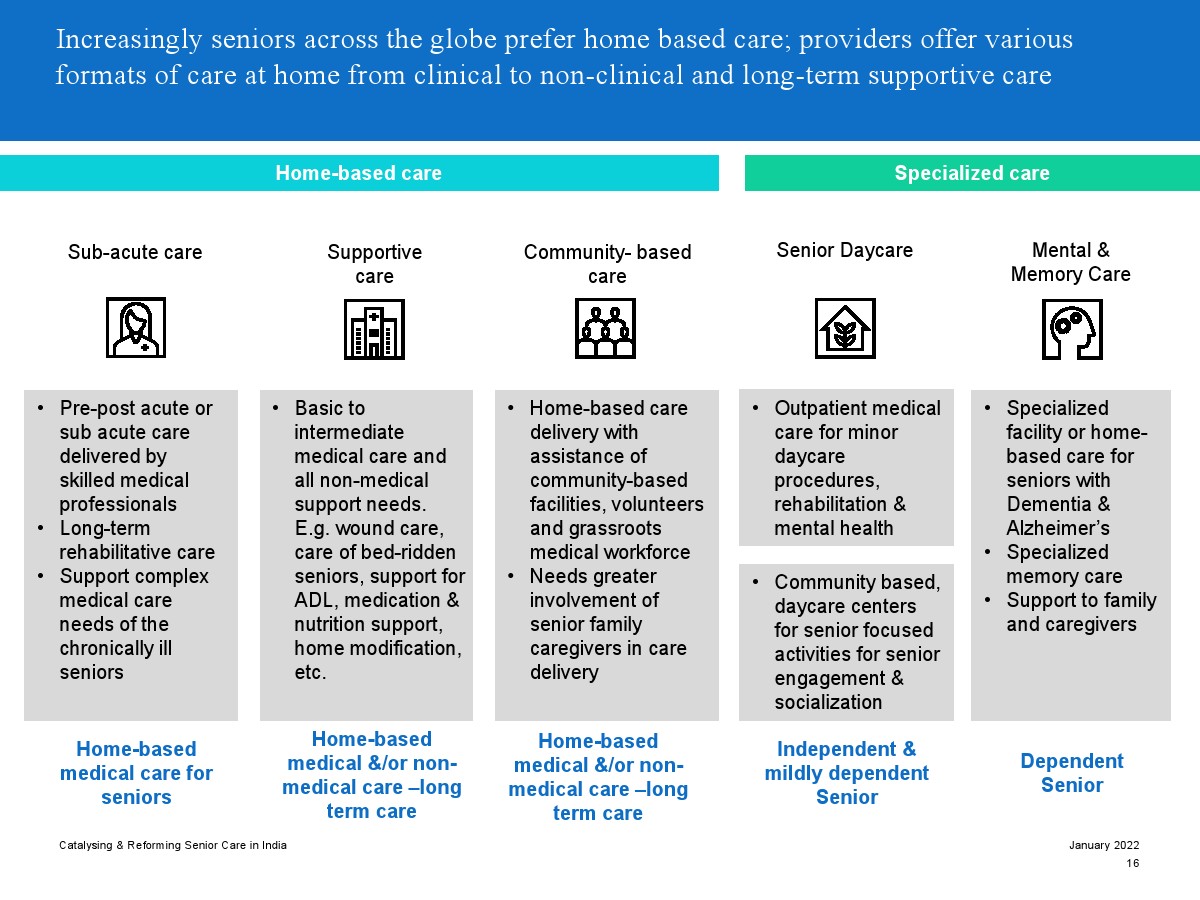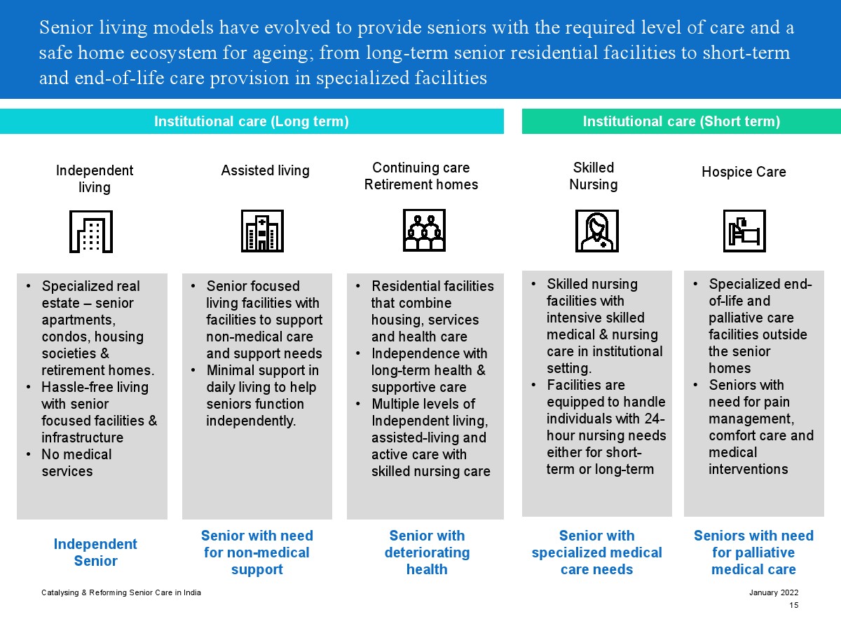 印度老年人協(xié)會發(fā)布了新報(bào)告“促進(jìn)和改革印度老年人護(hù)理”。目前,印度享有年輕人口紅利。但到2050年,老齡化人口將增長到約3.3億人。老年人口的增長、預(yù)期壽命的延長、負(fù)擔(dān)能力的提高、疾病負(fù)擔(dān)的轉(zhuǎn)移和家庭結(jié)構(gòu)的變化正在推動(dòng)對醫(yī)療和非醫(yī)療老年護(hù)理的需求。隨著人口老齡化的加劇,對護(hù)理和資源的需求將會增加。由于老年人將在未來30年內(nèi)占該國人口的20%,因此印度必須立即采取行動(dòng)。