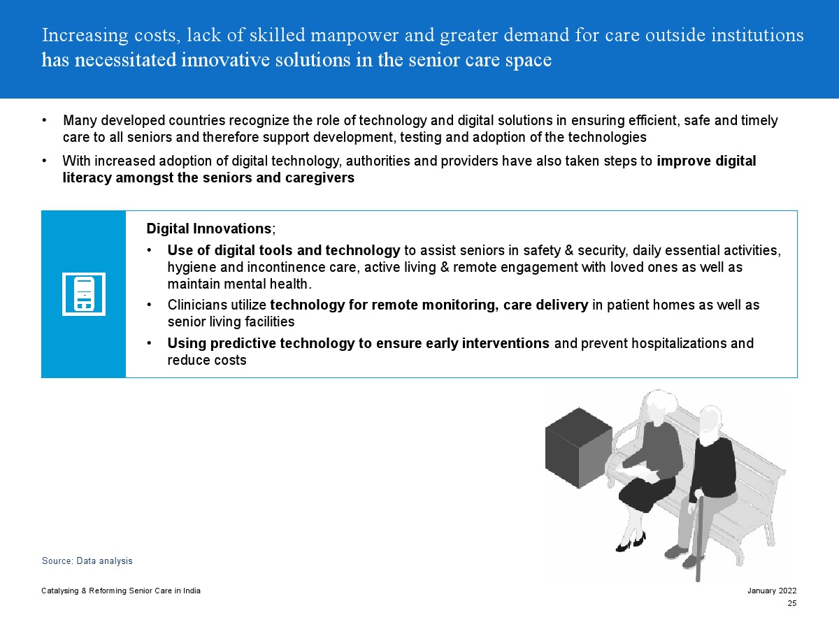 成熟的老年護(hù)理生態(tài)系統(tǒng)專注于創(chuàng)新解決方案,如數(shù)字技術(shù)、遠(yuǎn)程護(hù)理交付模塊、使用人工智能和機(jī)器學(xué)習(xí)的早期響應(yīng)、使家庭環(huán)境安全的技術(shù)等